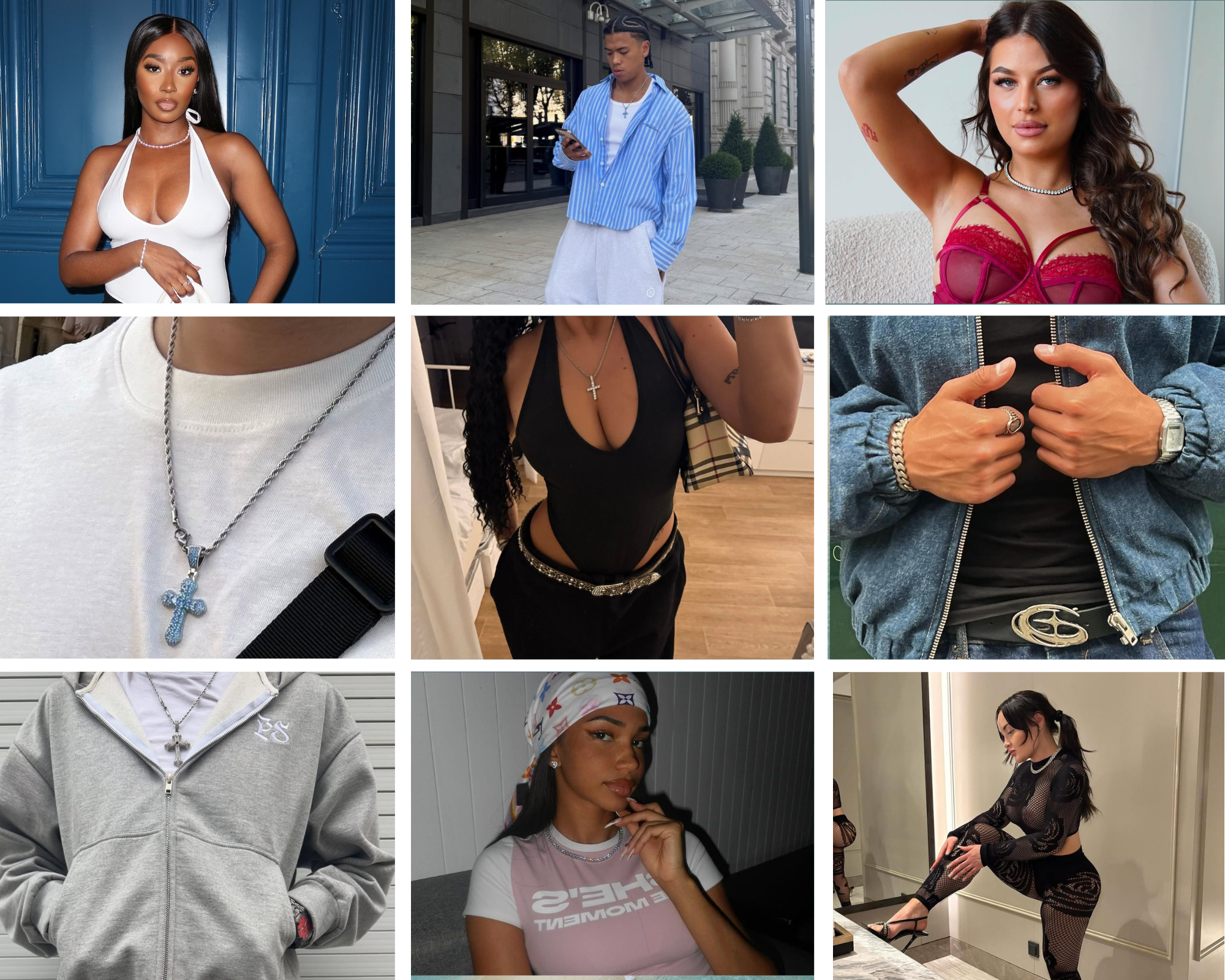 MOISSANITE CROSS & GEMSTONES CHAIN.