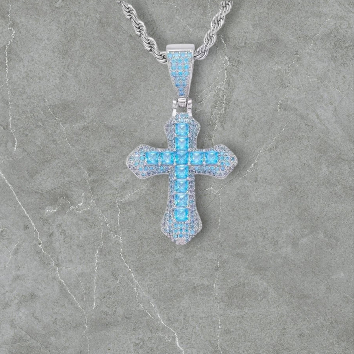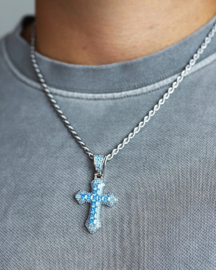 PENDENTIF CROIX BLEUE - Or blanc