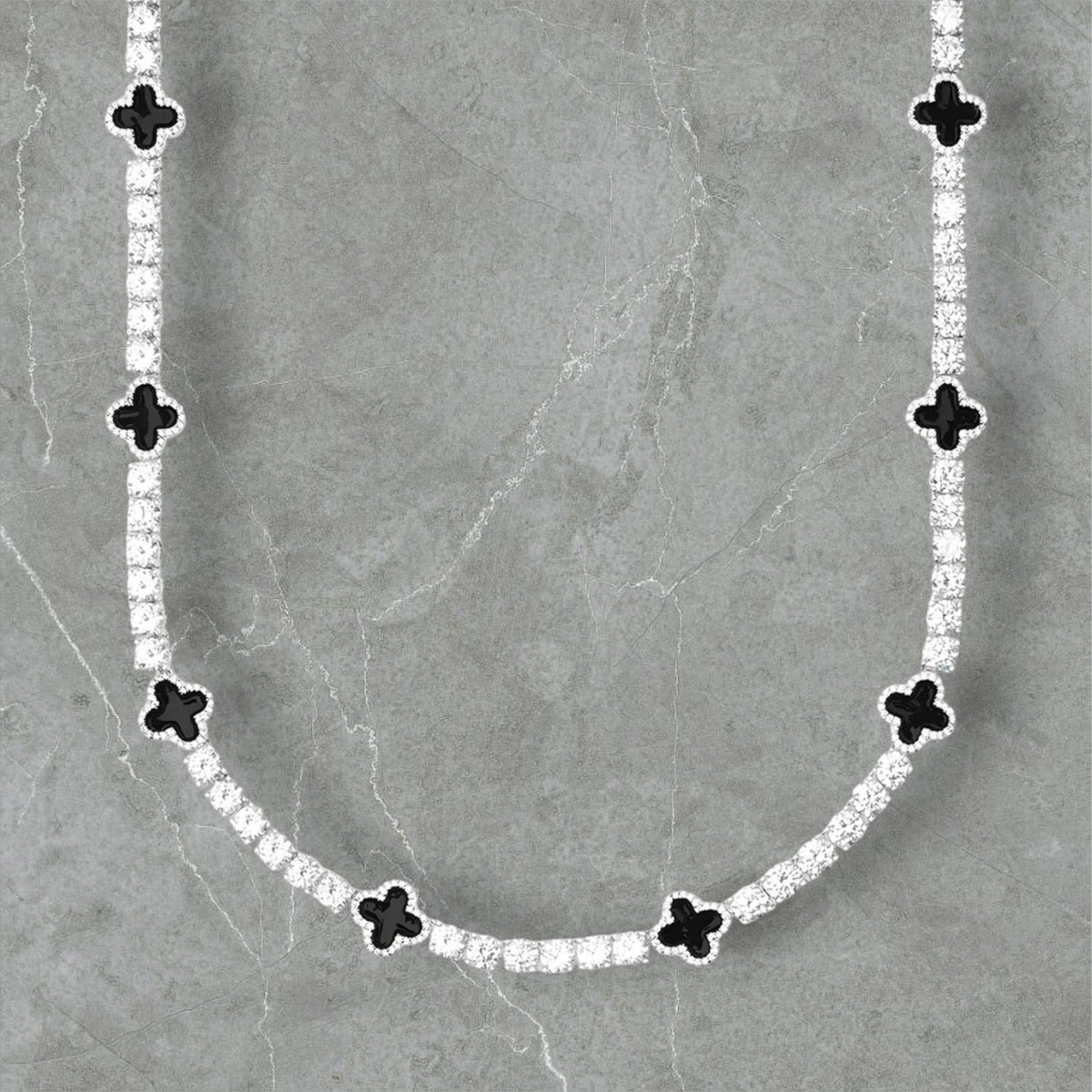 CHAÎNE DE TENNIS EN TRÈFLE NOIR EN MOISSANITE.